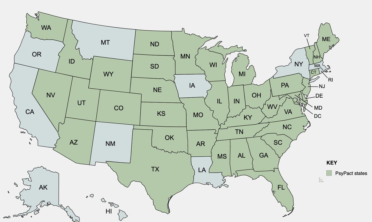 We offer in-office therapy and assessment services, as well as virtual therapy and assessment, for clients in the DMV along with 38+ PSYPACT states (see full list here):